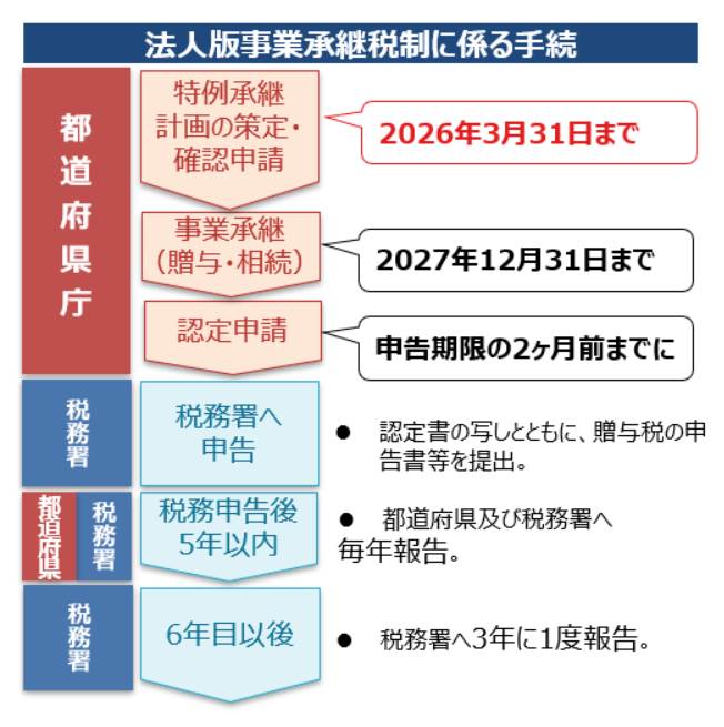 期限があるものの、一般措置より手厚い支援が受けられる特例措置の承継計画の提出は2026年3月31日まで、相続・贈与(事業承継)は2027年12月31日までとなっています。