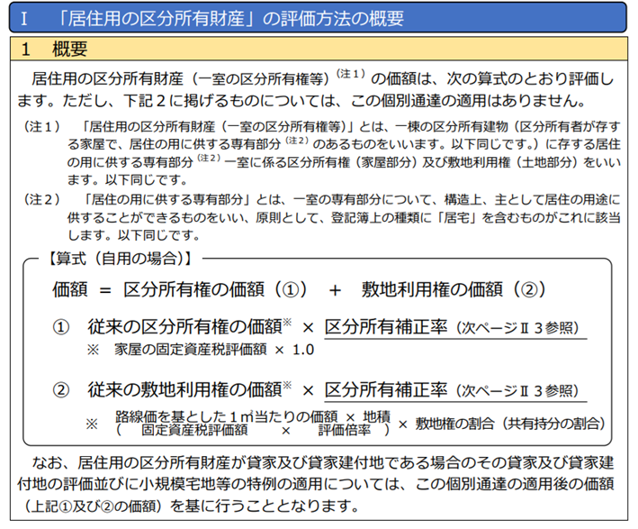 出典:国税庁「『居住用の区分所有財産』の評価が変わりました」