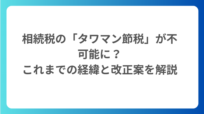 この記事ではタワマン節税のスキームや、経緯、今回の税制改正の予定について解説します。