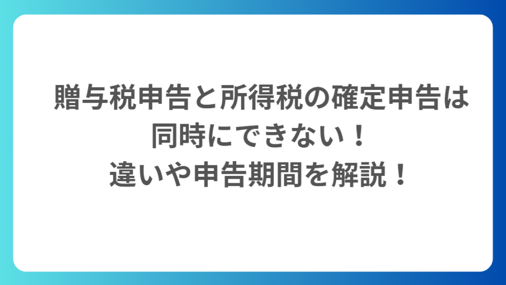 贈与税と所得税の確定申告は、課税対象や納税の目的が異なりますので別々の手続きとして行う必要があります。